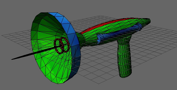 Gun used to shoot the UFOs and low polygon count cow.