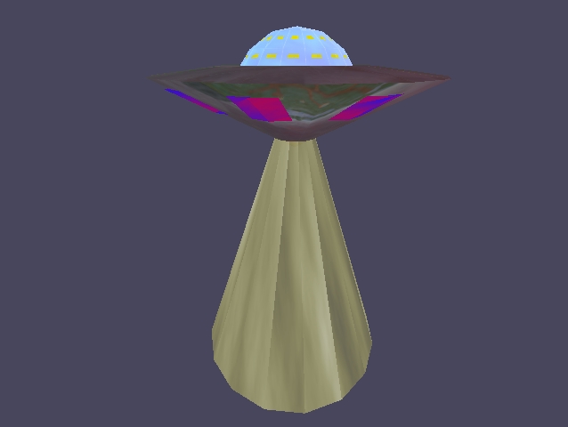 The biggest bug by far was the rendering errors we encountered when there were multiple objects imported into the engine. Updating the push/pop functions helped but did not eliminate the problems. The main problem comes from the MgcTextureEffectState management I believe which is basically a copy of the MgcTextureState. The problem that we initially had was using animated textures (which add a time to the MgcTexture class) on the tractor beam and then attaching and detaching that beam based on whether the UFO was near the cow. When the UFO turned on its beam not only did its texture rotate but so did everyone else's! An example is given below: